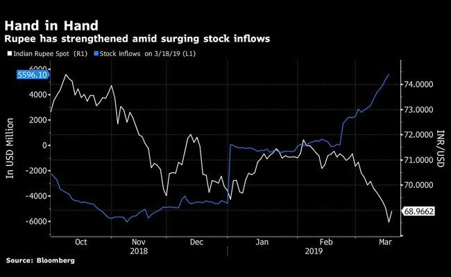 Foreigners bought a net $3.3 billion of shares through March 18, accounting for more than half the $5.6 billion of inflows year-to-date, and raised holdings of bonds by $1.4 billion this month. The gush of dollars sent the rupee to its highest level since August, prompting profit-booking that saw the currency headed for its second drop in eight sessions on Wednesday.