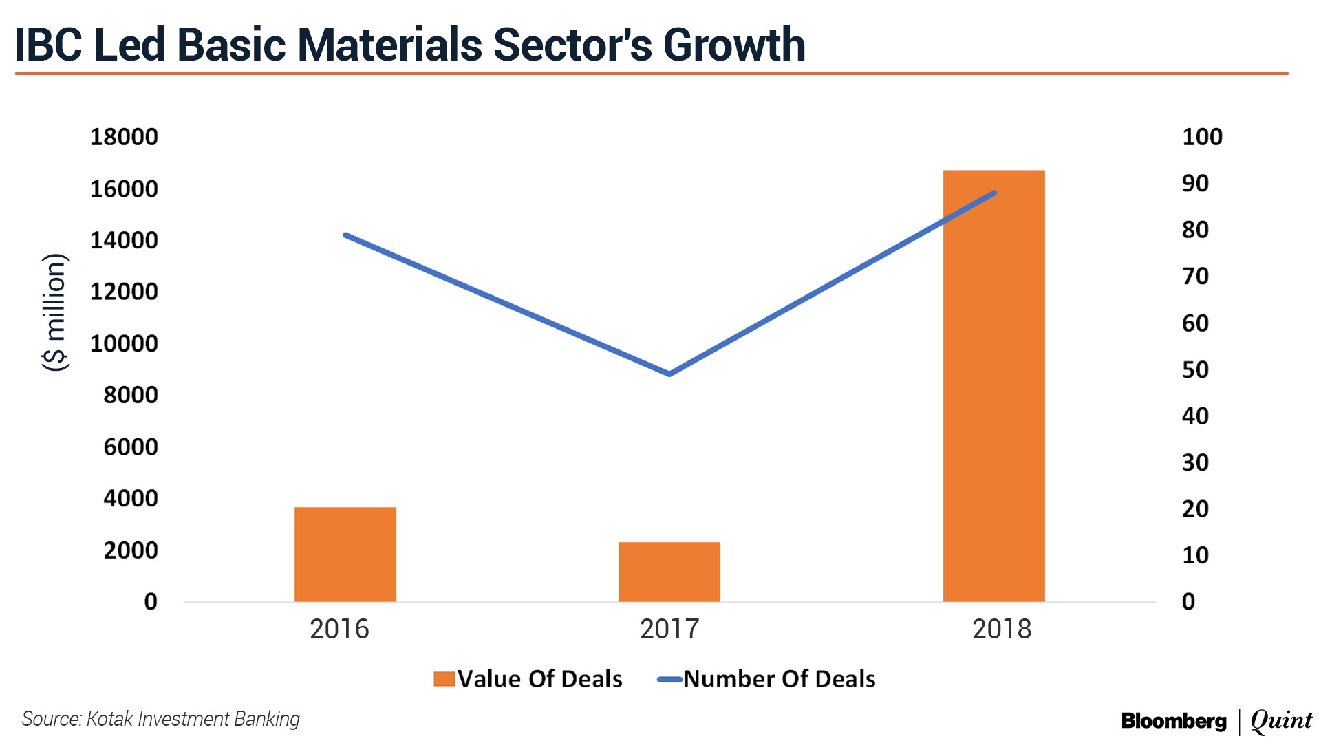 The basic materials sector largely drove home the growth on the back of the Insolvency and Bankruptcy Code. The $6.8 billion dollar acquisition of Bhushan Steel Ltd. by Tata Steel Ltd. was the most important deal that stemmed out of the new law, driving the flow of money into the sector in 2017-18. Other deals include Vedanta Ltd.'s acquisition of Electrosteel Steels Ltd., Reliance Jio Infocomm Ltd.'s decision to buy assets worth $428 million from Reliance Communications Ltd. and IHH Healthcare Ltd.'s planned acquisition of Fortis Healthcare Ltd.