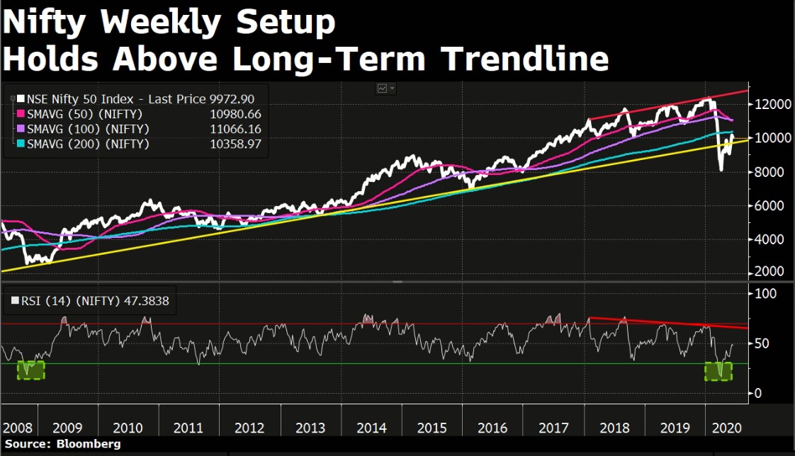 Milan Vaishnav, CMT, MSTA, technical analyst and founder of Gemstone Equity Research, said on the weekly charts, the Nifty is facing strong resistance of its 200-week moving average that currently stands at 10,360.