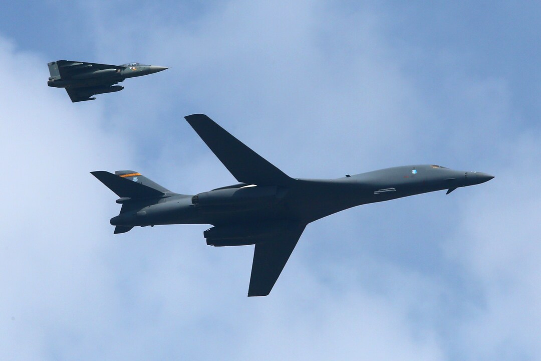 A U.S. Air Force B-1B Lancer bomber flies with an Indian Air Force light combat aircraft Tejas. Called the backbone of American long-range bomber aircraft, it's capable for carrying payloads of up to 35,000 kilograms. It holds about 50 world records for speed, payload, range, and time of climb in its class.