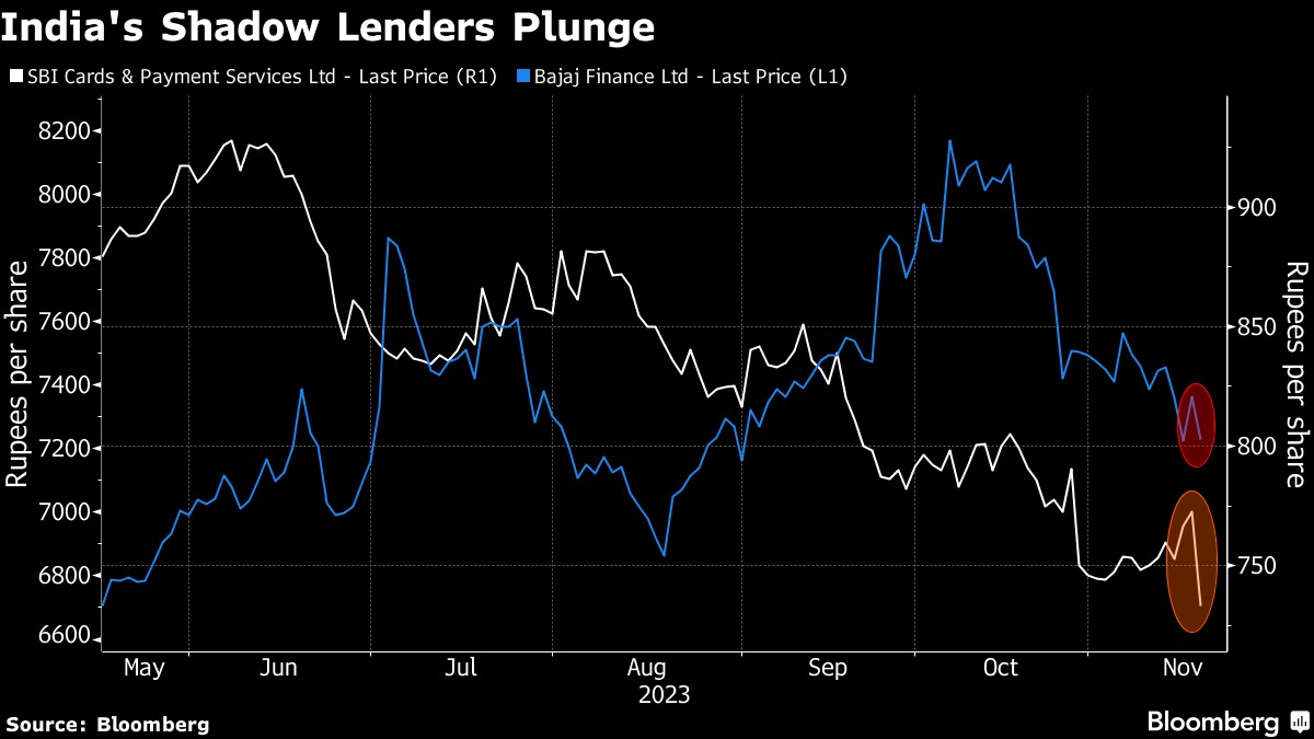 SBI Cards & Payments Services slumped as much as 6.8% to its lowest since March due to high exposure to such debt, while bank Bajaj Finance, the nation's largest shadow lender, tumbled 3.5% as investors assessed the growth prospects for financial services companies — the most influential segment of India's $3.7 trillion stock market.
