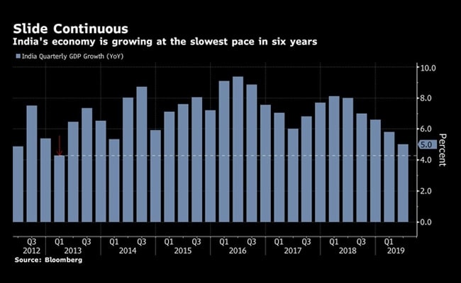 "The nature of the slowdown is broad-based, with consumption as well as investment oriented sectors feeling the pain," said Indranil Pan, chief economist at IDFC First Bank Ltd. in Mumbai. "Continuing poor domestic sentiment along with the lack of any demand uptake globally would ensure that any recovery process would only be gradual."