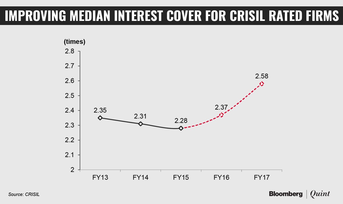 The ratings agency's universe of companies has shown a “steady improvement in capital structure and debt protection metrics over the past three years”. The recovery has been broad-based as median interest cover of companies improved to 2.58 in fiscal 2017 from 2.28 in fiscal 2015. A coverage ratio of more than one means the company will be able to service its interest obligations for the current year.