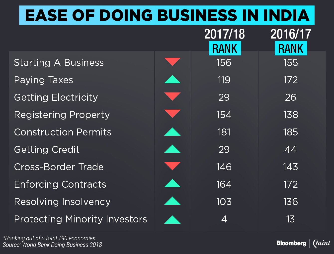It's not all rosy for India though. Getting electricity and registering for property remains a challenge as India saw ranking decline on the two parameters. And even with the improvement, the country ranks 181 out of 190 on construction permits. For cross-border trading and enforcing contracts, India stands at 146 and 164, respectively.