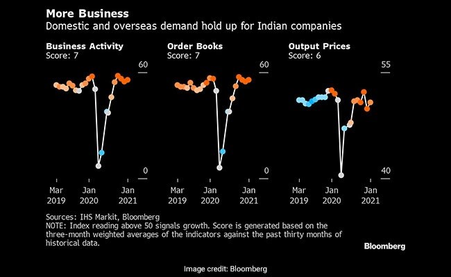 The January reading points to a solid start for the new quarter, building on nascent gains seen in the October-December period. Official data on Friday is likely to show that India exited a recession in the final three months of 2020, with economists in a Bloomberg survey forecasting a gross domestic product expansion of 0.5% from a year ago.
