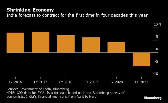 The lockdown from mid-March to contain the pandemic was a blow to the economy like no other. It brought activity to a virtual halt as businesses shut down and millions of workers fled the cities for their rural homes. That's put GDP on course for the first annual contraction in more than four decades -- a full-year decline of 5.6 per cent, according to a separate Bloomberg survey.