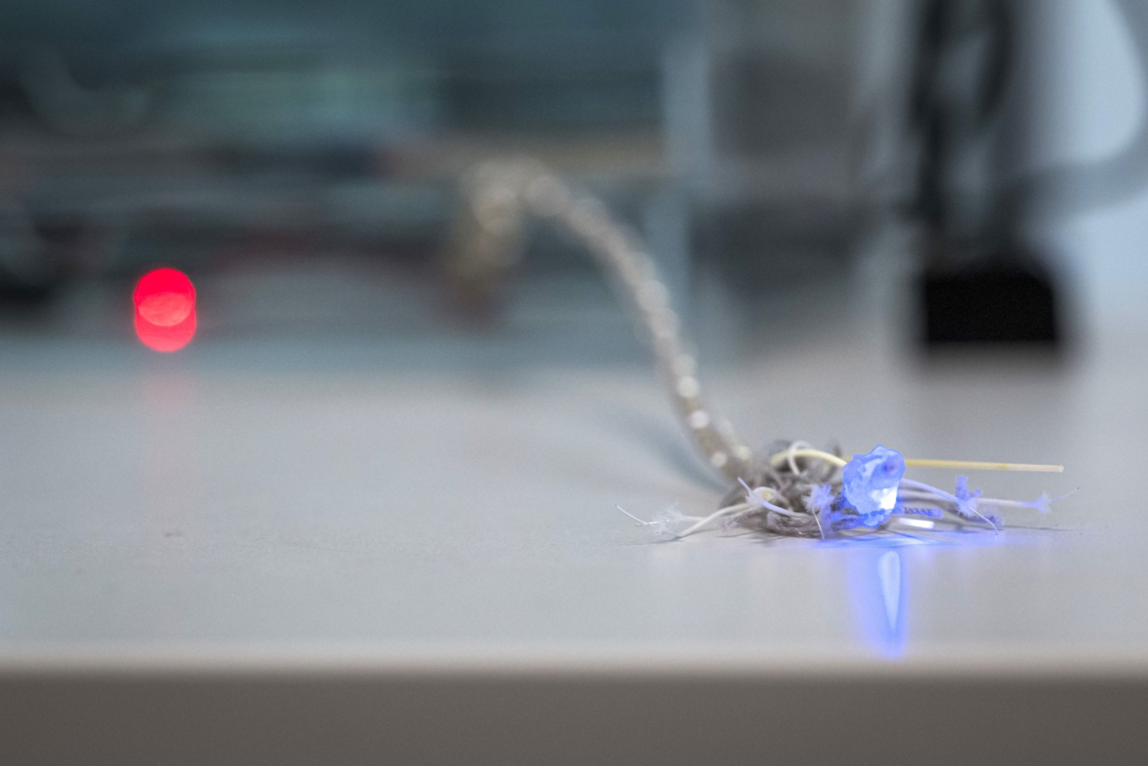A cord demonstrating bio interface artificial intelligence (AI) sits on a table during a Google AI event in San Francisco, California, U.S. (Photographer: David Paul Morris/Bloomberg)