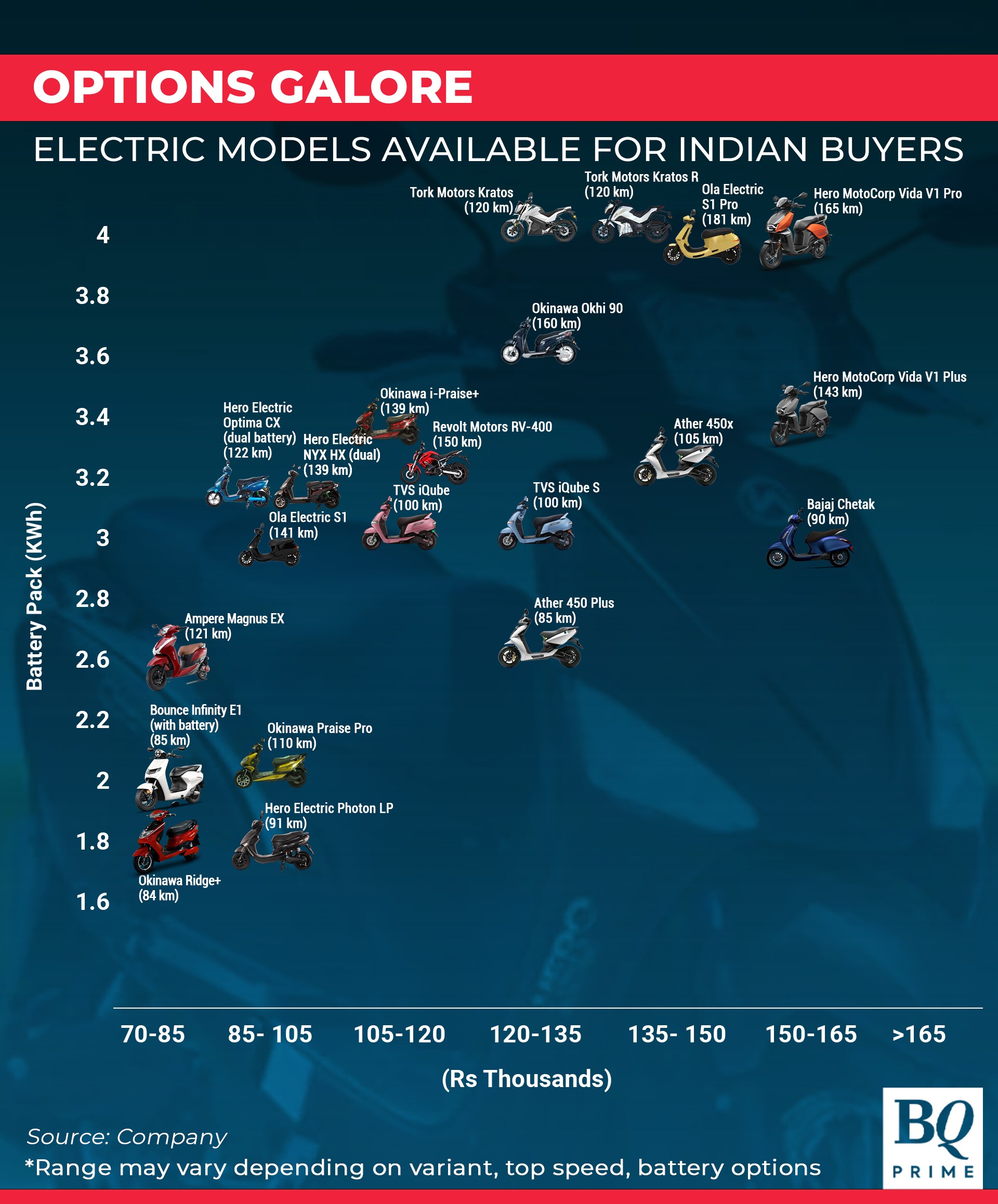 Buyers can choose a product based on the battery power, top speed and price points they prefer.