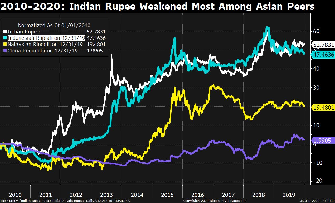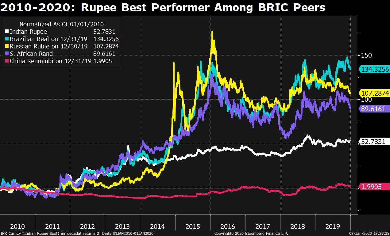The Indian rupee has come off a decade which will leave currency watchers with mixed emotions. The currency ended up being the worst performer among Asian emerging peers but managed to escape the kind of drubbing that its competitors in the ‘BRICS' grouping saw.
