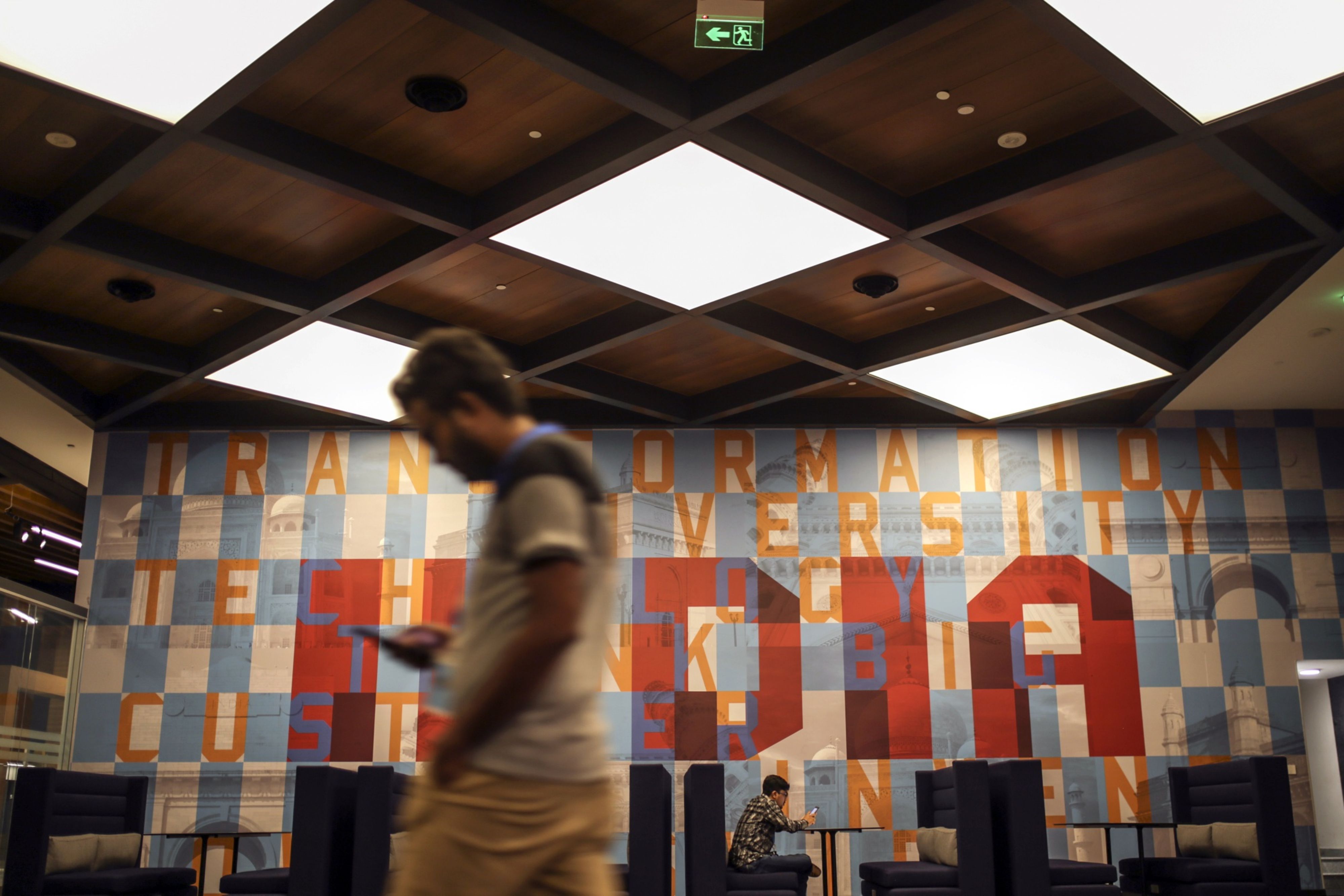 A mural is displayed in a collaborative work area at the Amazon.com Inc. office campus in Hyderabad, India, on Friday, Sept. 6, 2019. Photographer: Dhiraj Singh/Bloomberg