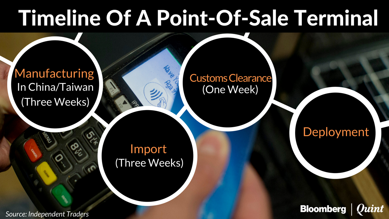 BloombergQuint also spoke to a head of a merchant acquiring payment solutions company, who spoke on the condition of anonymity. There are no big manufacturers of PoS terminals in India which increases the lag time between ordering and actual deployment of the terminal, said this person. He added that suppliers will find it tough to deliver on such large bulk orders at short notice so one might have to look for alternatives, the person said.