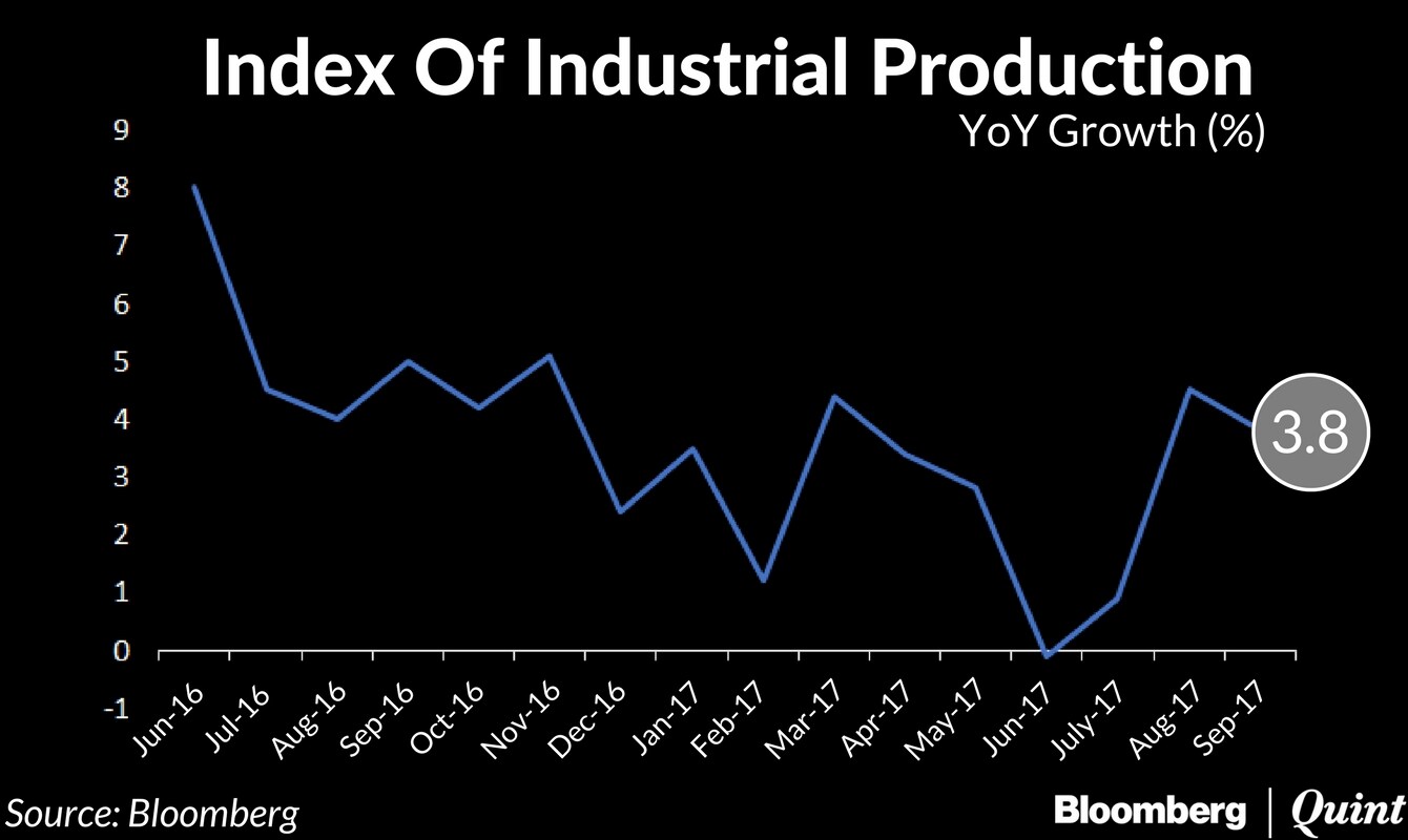India's industrial output growth slowed in September as the revival after the Goods and Services Tax-led disruption lost some momentum.