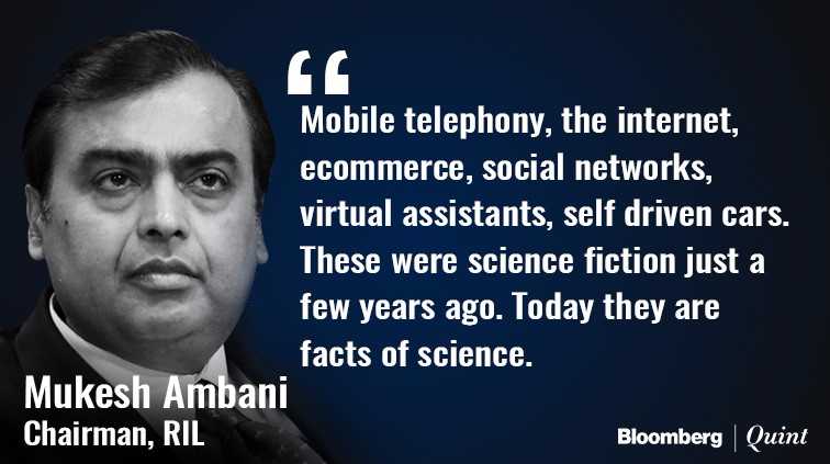 Ambani said that the early adopters of the technological shift will be rewarded by creating “unprecedented societal value” and those who do not “will become irrelevant”.