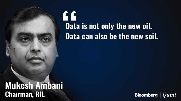 Ambani said that he expects India's data infrastructure to surpass that of the U.S. by 2019. India's lack of digital infrastructure and older technology is a boon in disguise, according to him.