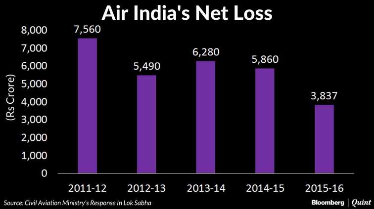 The national carrier has been unprofitable since it was merged with Indian Airlines in 2007. It saw its losses widen to more than Rs 7,500 crore in the financial year 2011-12 and stood at Rs 3,836.7 crore at the end of FY16, according to the civil aviation ministry's response to a question in the Lok Sabha in March.