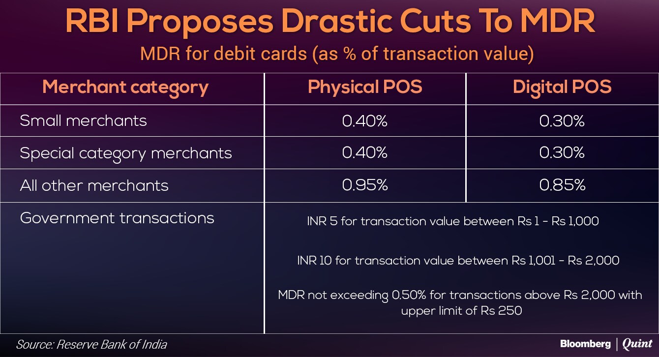The RBI in its guidelines is also trying to segment the market by setting differential MDRs for digital and physical point-of-sale systems. It also proposed lower fee for essential services which will attract the same cost structure as small merchants.