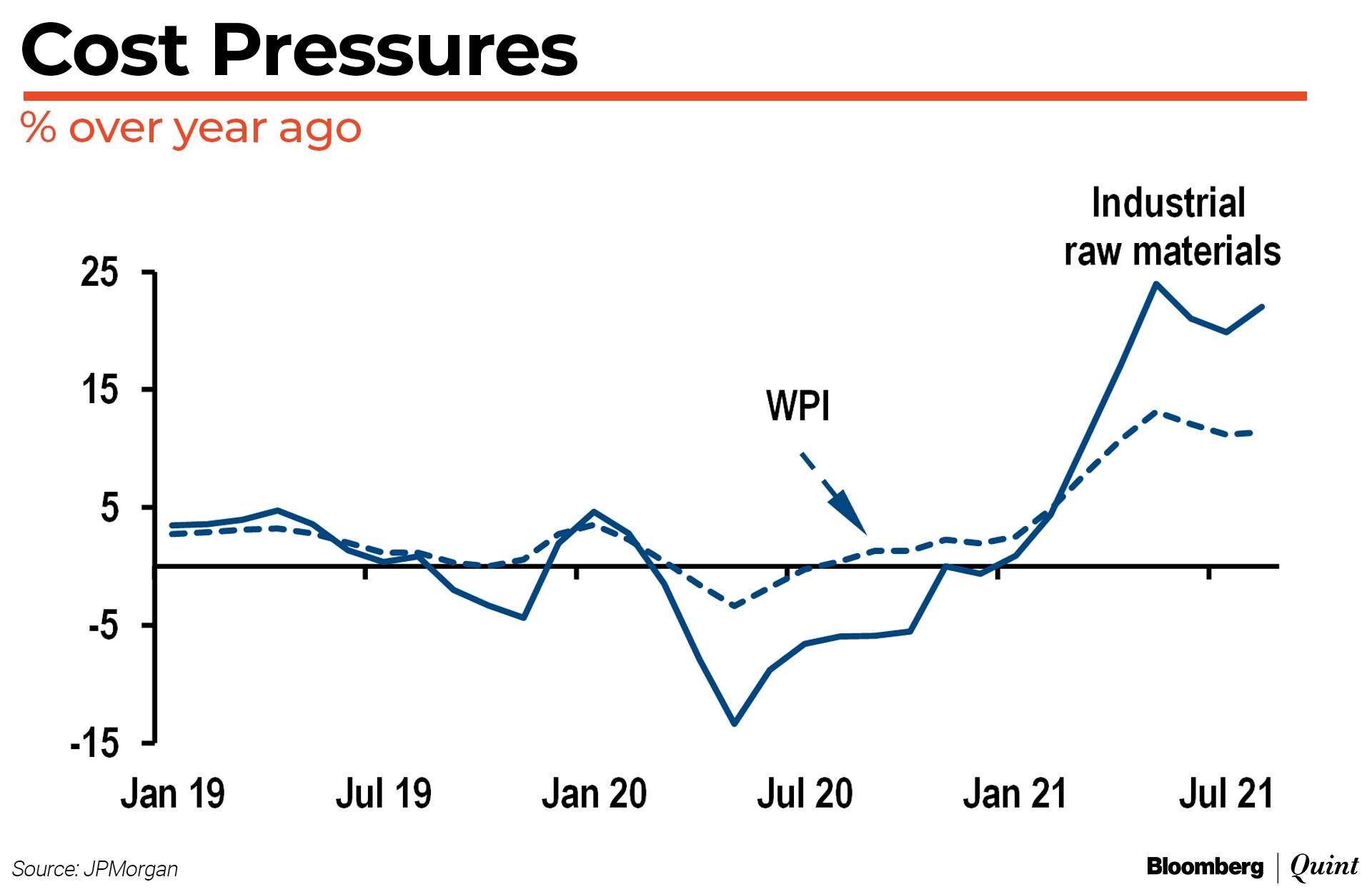Industrial raw material costs have risen in India's Wholesale Price Index till August. This does not yet incorporate the September surge in energy and commodity prices.