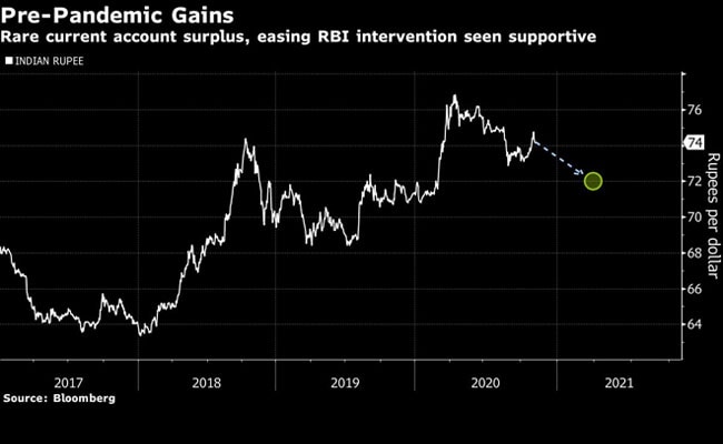 The rupee is set to recover by March to levels seen before the coronavirus pandemic, thanks to a rare current account surplus and expectations that the central bank may be more tolerant of a stronger currency, according to Nomura Holdings Inc.