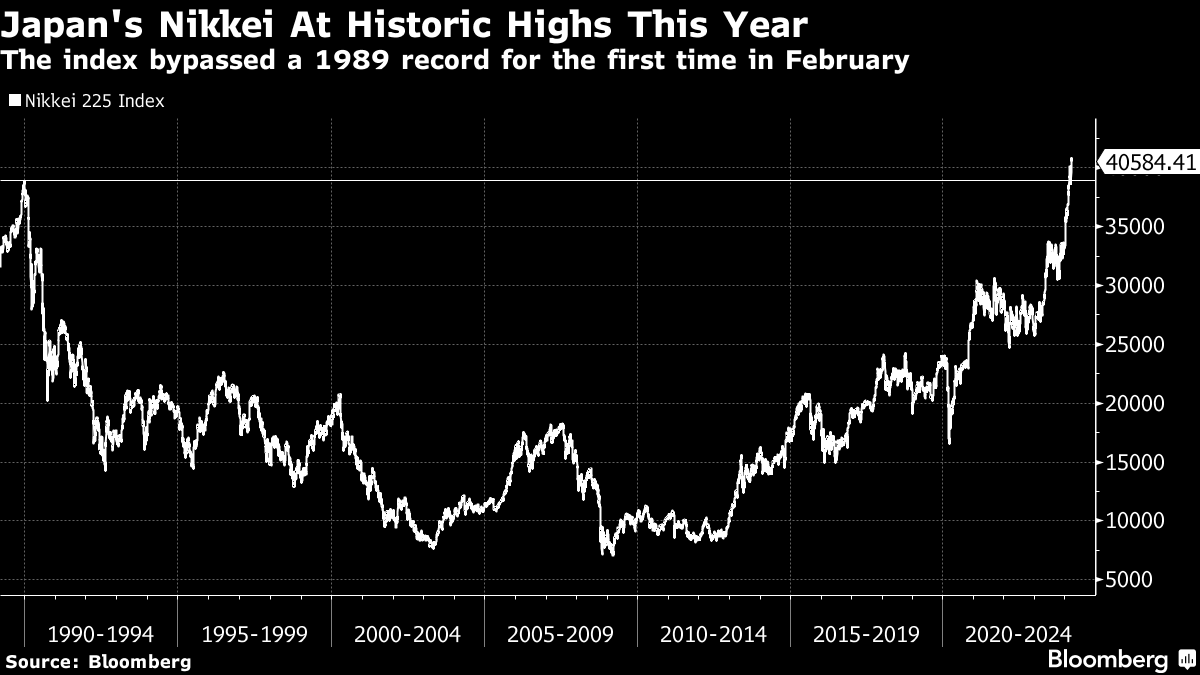 He joined BlackRock Inc. Chief Executive Officer Larry Fink, who said in October that he sees echoes of Japan's 1980s “economic miracle” in the nation's current efforts to transform its economy. Last week, the Bank of Japan raised rates for the first time in 17 years, emphasizing that it was nearing its goal of sustained higher prices.