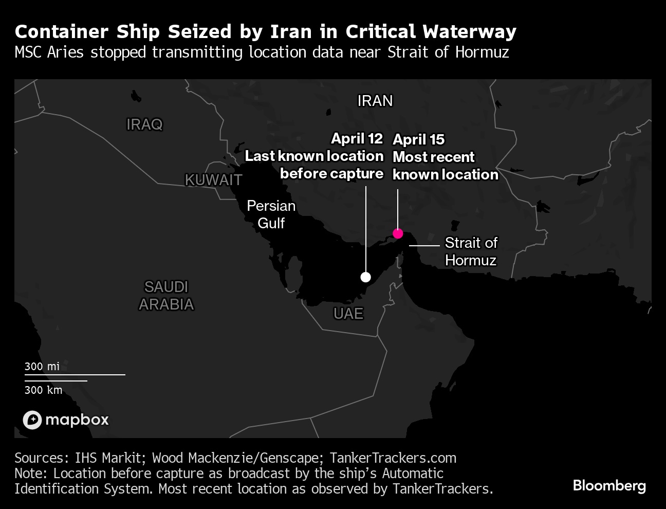 (Bloomberg) The MSC Aries wasn't much different from the other 7,000 container ships plying the high seas, until it took an involuntary detour near the Strait of Hormuz into the hands of Iran's Islamic Revolutionary Guard Corps.