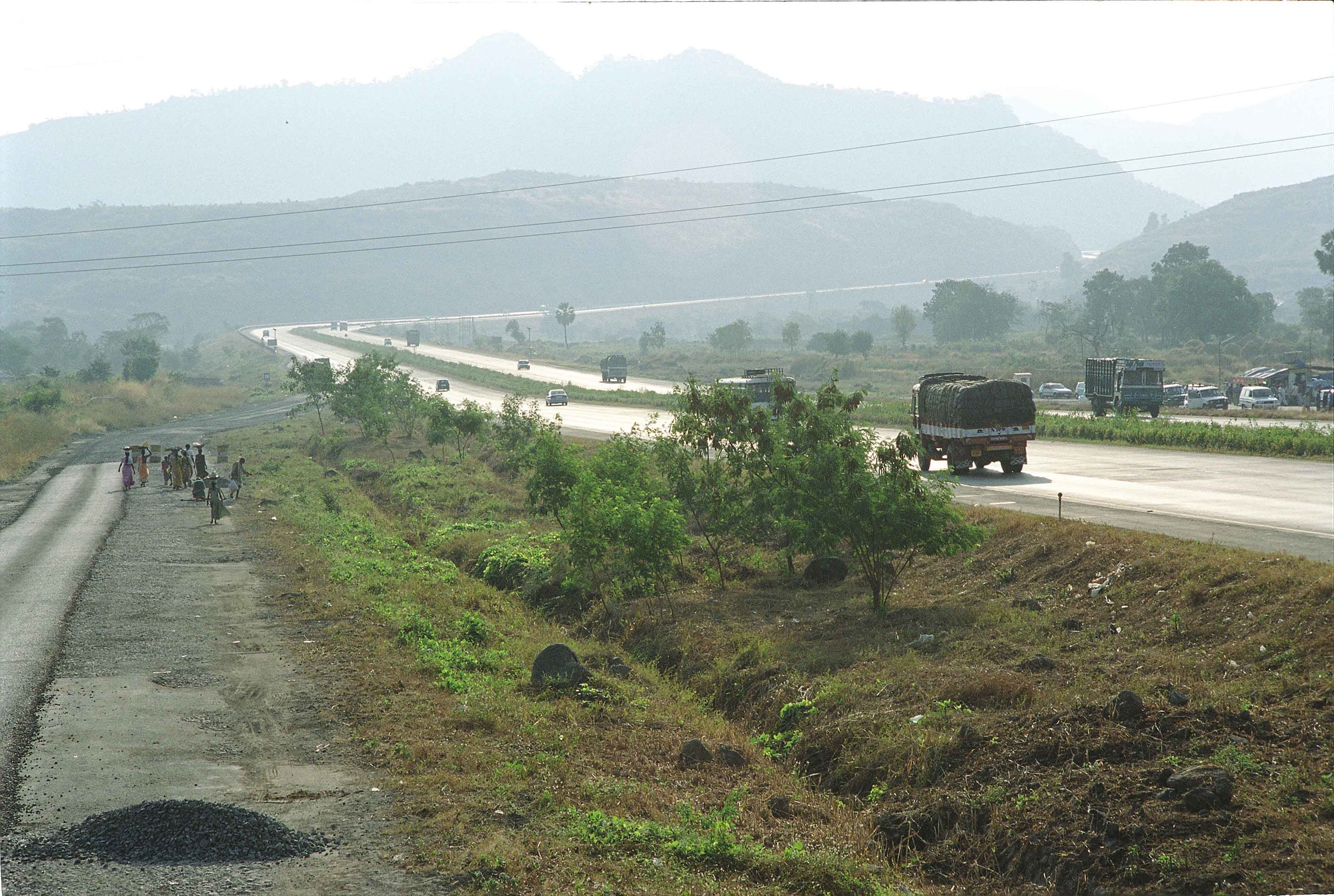 A feeder road giving access to India’s first superhighway, The expressway between Mumbai and Pune. (Photographer:Santosh Verma/Bloomberg News)