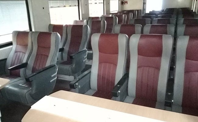 5. Like the Shatabdi Coaches, Tejas coaches also have a seating capacity of 78 passengers in each of the normal air-conditioned chair cars and 56 passengers in the executive class air-conditioned chair cars.