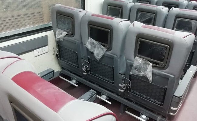 2. Unlike the earlier Tejas coaches where seats are large to accommodate the audio visual display, the Tejas coaches manufactured by ICF have normal sized seats with audio visual display units well fitted behind every seat.