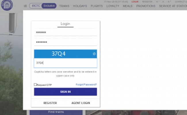 Step 1: The user is required to log into the IRCTC portal.