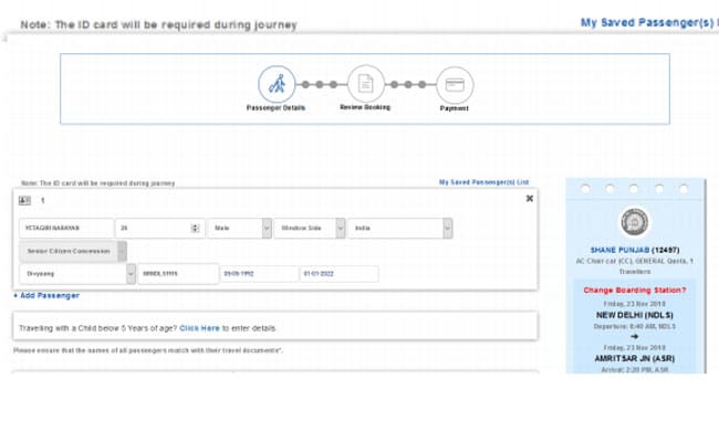 Step 6: After this step, the user is asked to enter personal details such as name and age along with the type of concession as given on the ID-proof provided by the Railways.