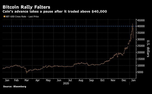 Up 38 per cent this year through Friday, Bitcoin had its best start to a year since 2012, when it surged almost 60 per cent over the first eight days. Scott Minerd, chief investment officer with Guggenheim Investments, who recently said the coin could be worth as much as $400,000, wrote in a tweet that it was "time to take some money off the table."