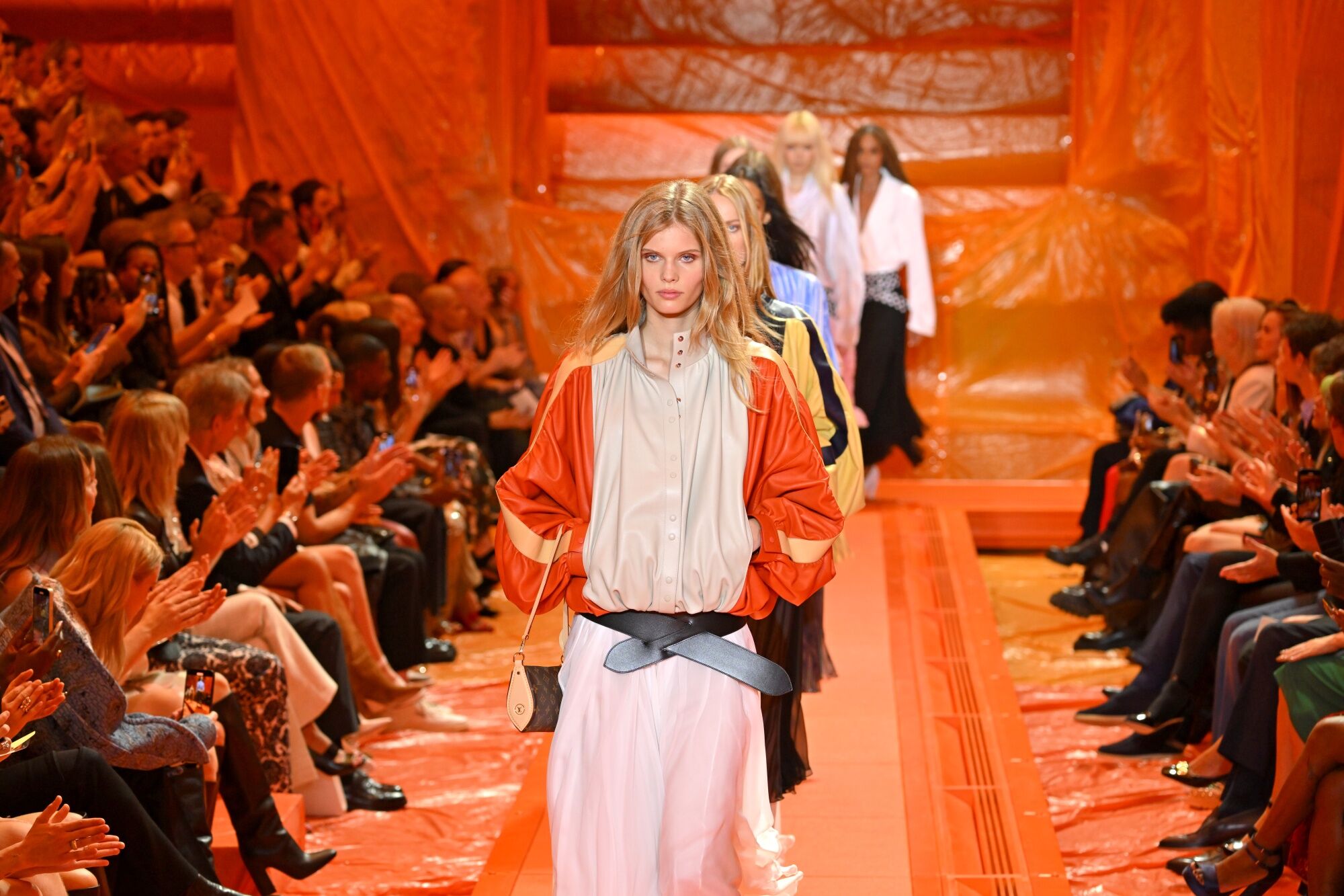 PARIS, FRANCE - OCTOBER 02: (EDITORIAL USE ONLY - For Non-Editorial use please seek approval from Fashion House) Models walk the runway during the Louis Vuitton Womenswear Spring/Summer 2024 show as part of Paris Fashion Week on October 02, 2023 in Paris, France. (Photo by Kristy Sparow/Getty Images)