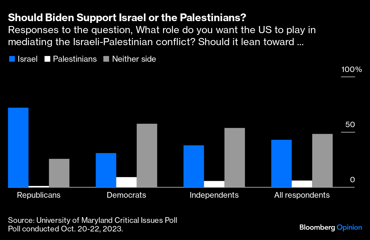 Still, the internal split is politically damaging for Biden, and will likely cost him at least some support from younger progressives and Arab and Muslim Americans. That's not to say it would be wise, politically or substantively, for Biden to join the anti-Israel camp. Alienating elements of your base is bad, but alienating the broad middle of the electorate is worse.