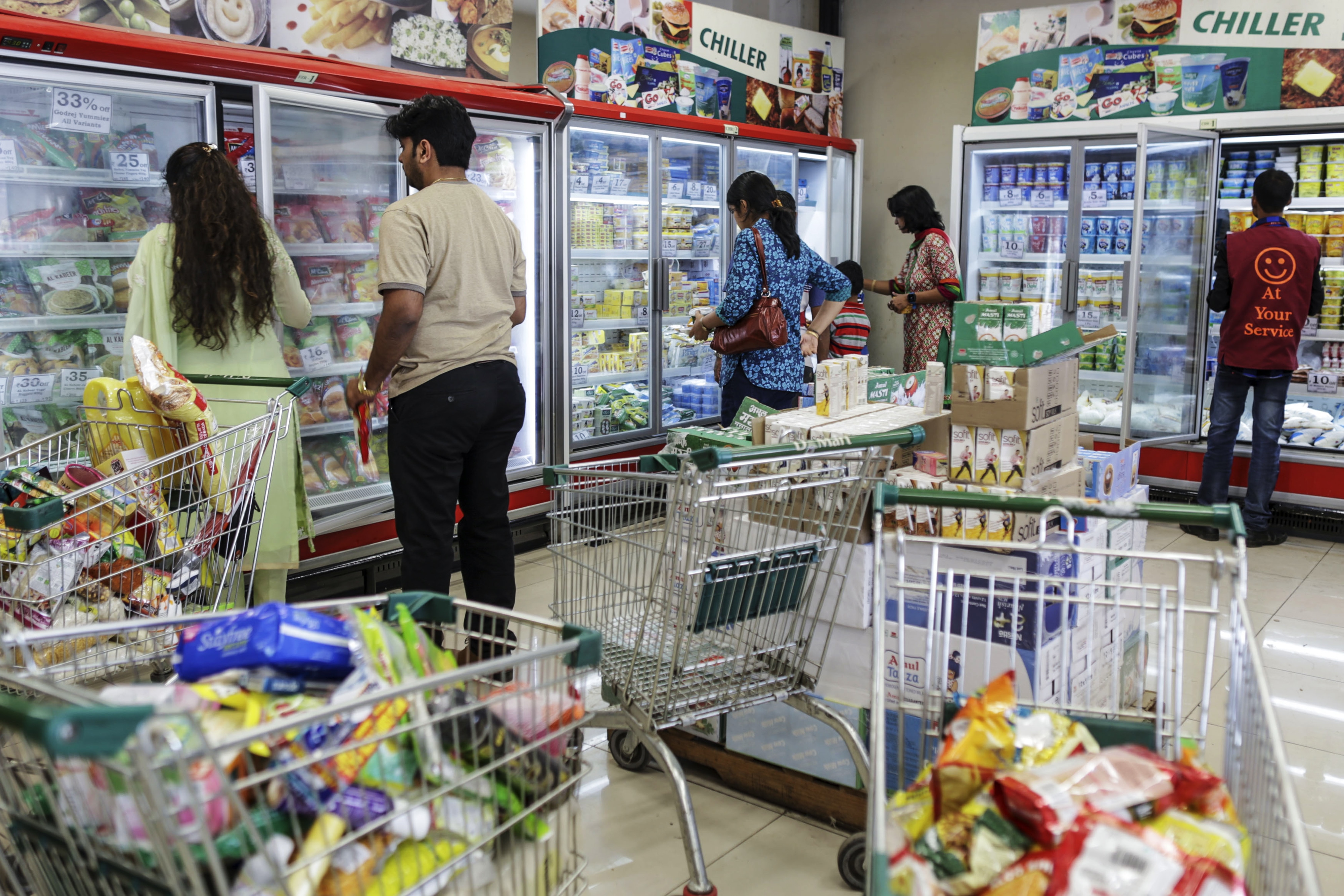 Shoppers browse chilled and frozen foods at a D-Mart supermarket operated by Avenue Supermarts Ltd. in Thane, Maharashtra, India (Photographer: Dhiraj Singh/Bloomberg)