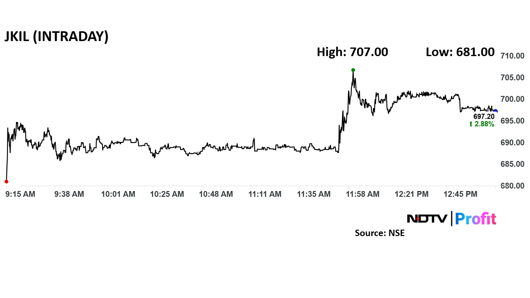 J Kumar Infra share price advanced 4.3% intraday to Rs 707 apiece on the NSE. The scrip pared some of the gains to trade 2.9% higher by 1:00 p.m. The benchmark Nifty 50 was up 1.25%.
