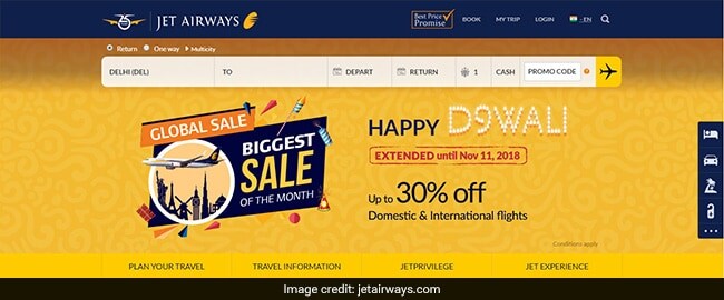 Jet Airways' "Diwali Sale" Extended, Flight Tickets From 1,998 Rupees