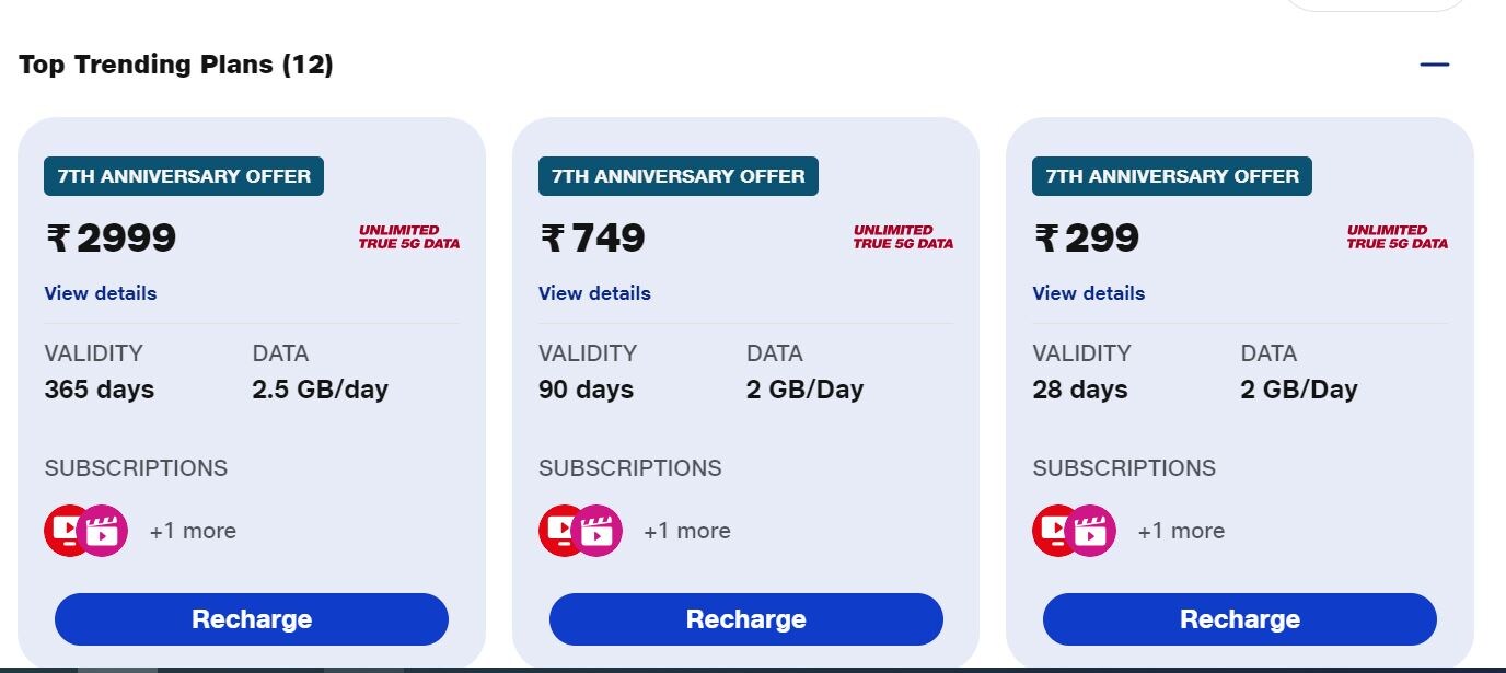 The special promotions are currently being applied to the recharge packages of Rs 299, Rs 749, and Rs 2,999.
