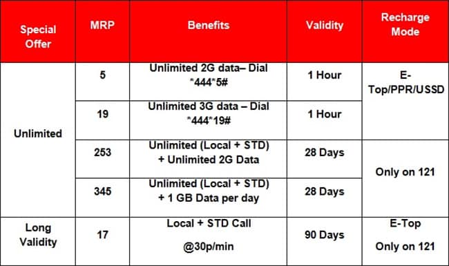 Vodafone gave details of of the five packs priced from Rs 5 to Rs 345: