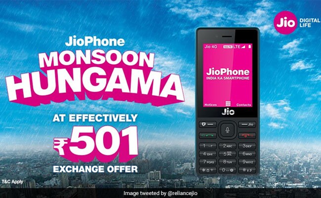 Under the Monsoon Hungama exchange offer, Reliance Jio's JioPhone device will be available to customers at an effective price of Rs 501, according to a statement by the company.