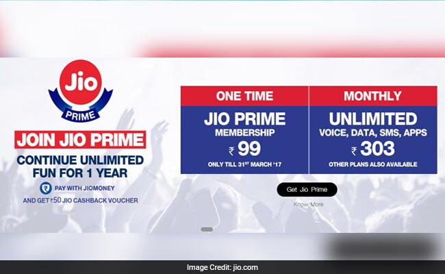 Soon, your last chance to subscribe to Jio's 'Prime' scheme will be gone. Reliance Jio, which last month announced its decision to start charging its customers from April 1, 2017, will close its limited time offer on March 31, 2017. So, you better hurry if you're still evaluating various benefits being offered by Reliance Industries' telecom arm - Jio. Join Jio Prime to "continue unlimited fun for 1 year", the new entrant telecom operator - which competes with the likes of Airtel, Vodafone and Idea - said on its website. Simply put: pay a one-time Rs 99 till March 31 for membership and thereafter, Rs 303 per month to enjoy "unlimited voice, data, SMS, apps", among other offers, as per Jio's website.