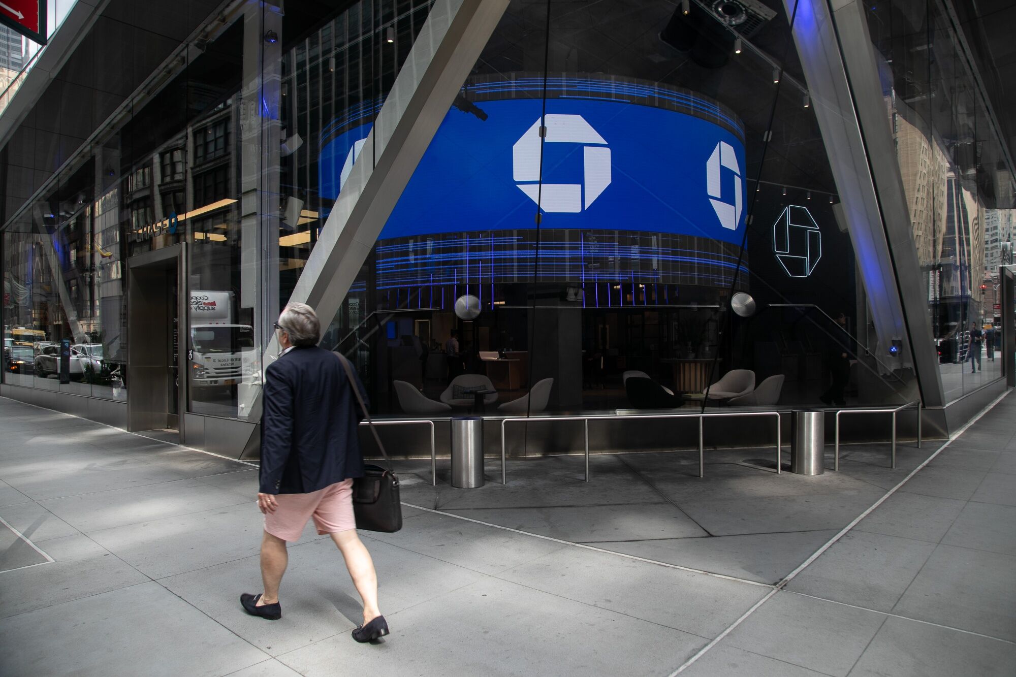 A JPMorgan Chase & Co. bank branch in New York, US, on Friday, July 7, 2023. JPMorgan Chase & Co. is scheduled to release earnings figures on July 14. Photographer: Michael Nagle/Bloomberg