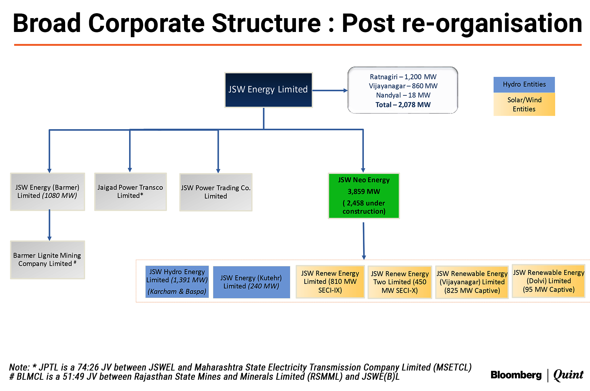 All existing and upcoming renewable energy units will be housed under JSW Energy Neo Ltd., a wholly owned subsidiary, the company said in an exchange filing. The company's operational hydro projects—Karcham: 1,091 megawatts and Baspa II: 300MW—will also come under the unit.