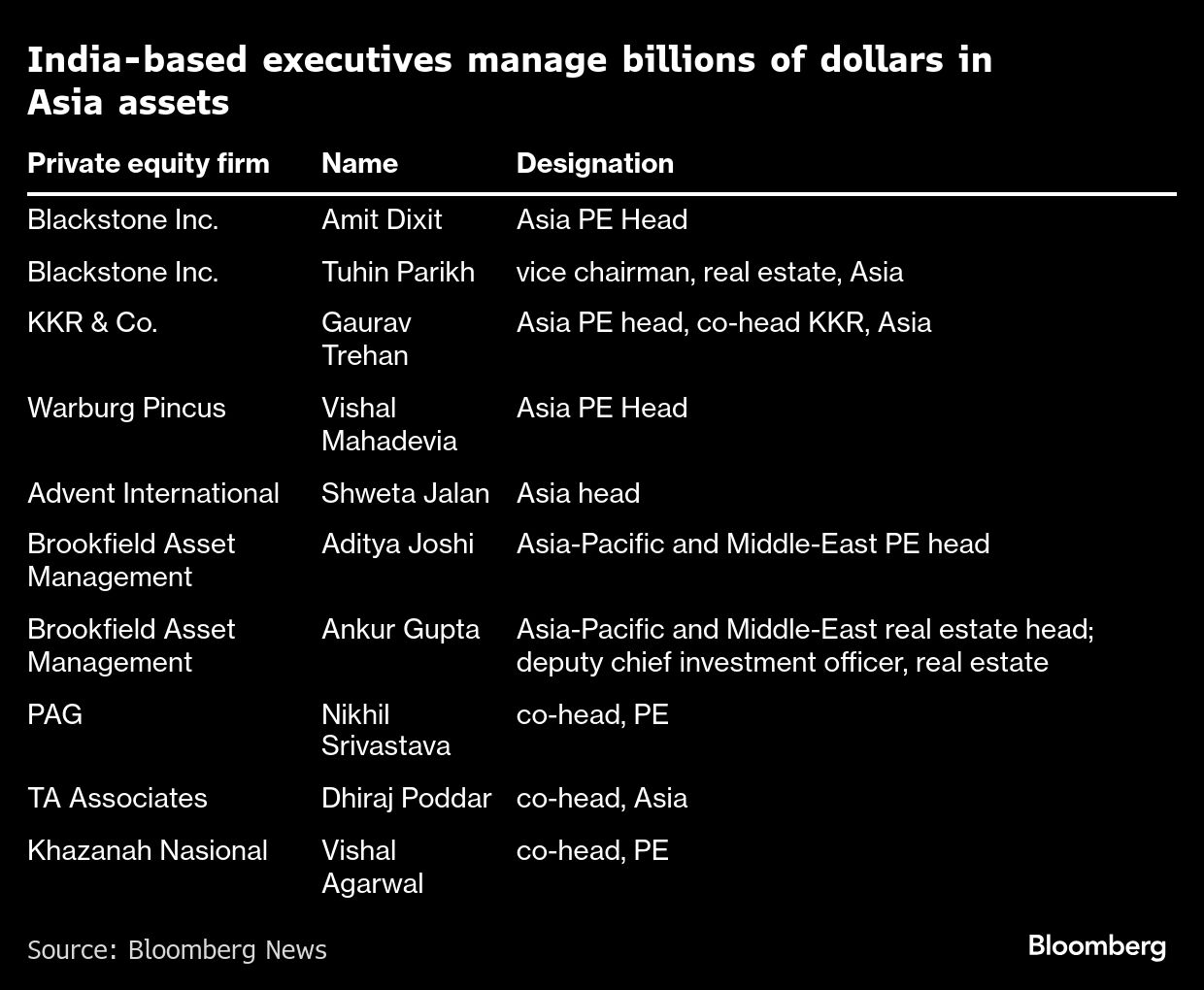 Global asset managers from KKR & Co. to Blackstone Inc. are ramping up investments in India and elevating locally-based executives to key regional roles, underscoring the nation's rise in Asia's private equity landscape.