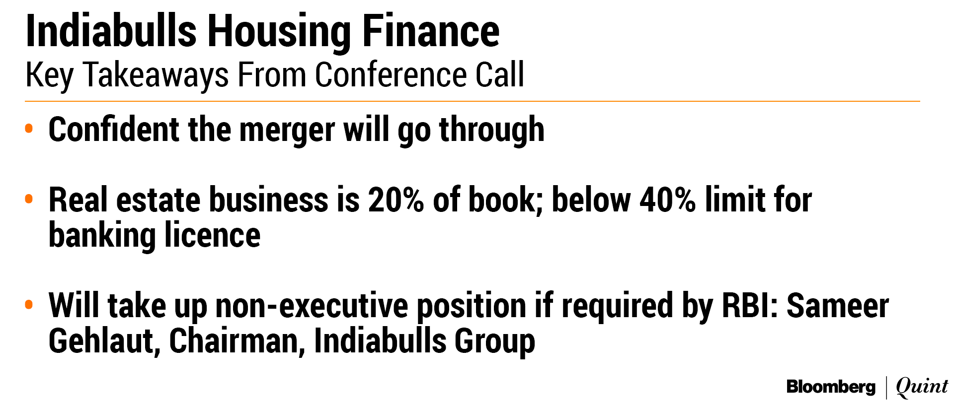 Post the merger, promoters of Indiabulls Housing Finance will hold 19.5 percent in the entity in return for the current 21.6 percent they hold in the non-bank lender. The promoters will need RBI approval for holding more than 10 percent in the bank.
