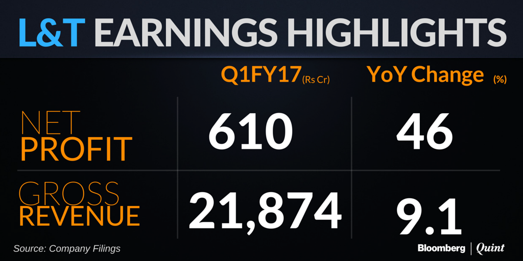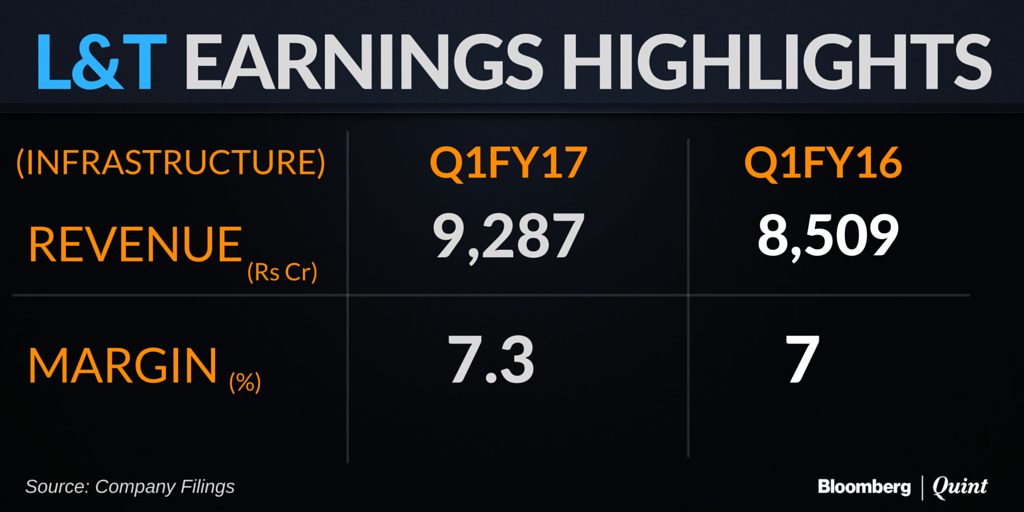 L&T's margins on earnings before interest, taxes, depreciation and amortisation rose to 8.77 percent from 8.26 percent in the same quarter last year.