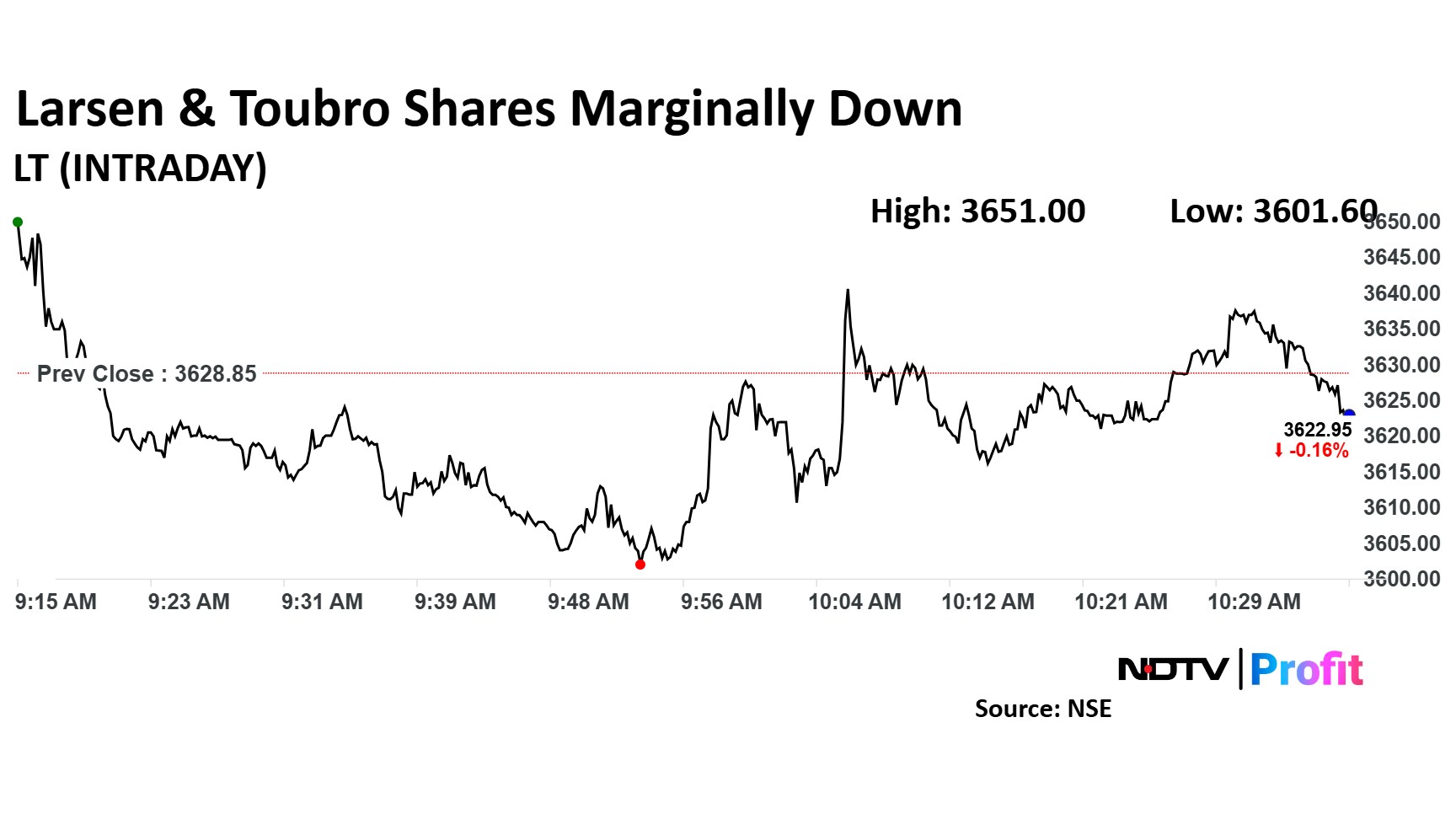 L&T share price fell as much as 0.75% to Rs 3,601.60 apiece. However, the stock soon pared losses to trade 0.22% higher at Rs 3,637 apiece, as of 10:31 a.m. This compares to a 0.16% advance in the NSE Nifty 50 Index.