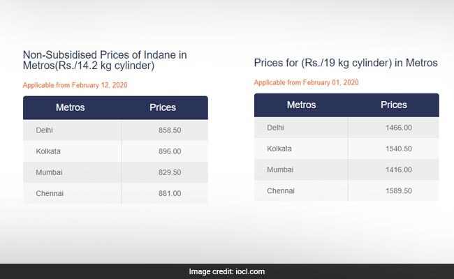 From February 1, the prices of 19-kilogram cylinders were revised upwards to Rs 1,466.00 per unit in Delhi and Rs 1,540.50 in Mumbai, from Rs 1,241.00 and Rs 1,190.00 respectively, according to data from Indian Oil.