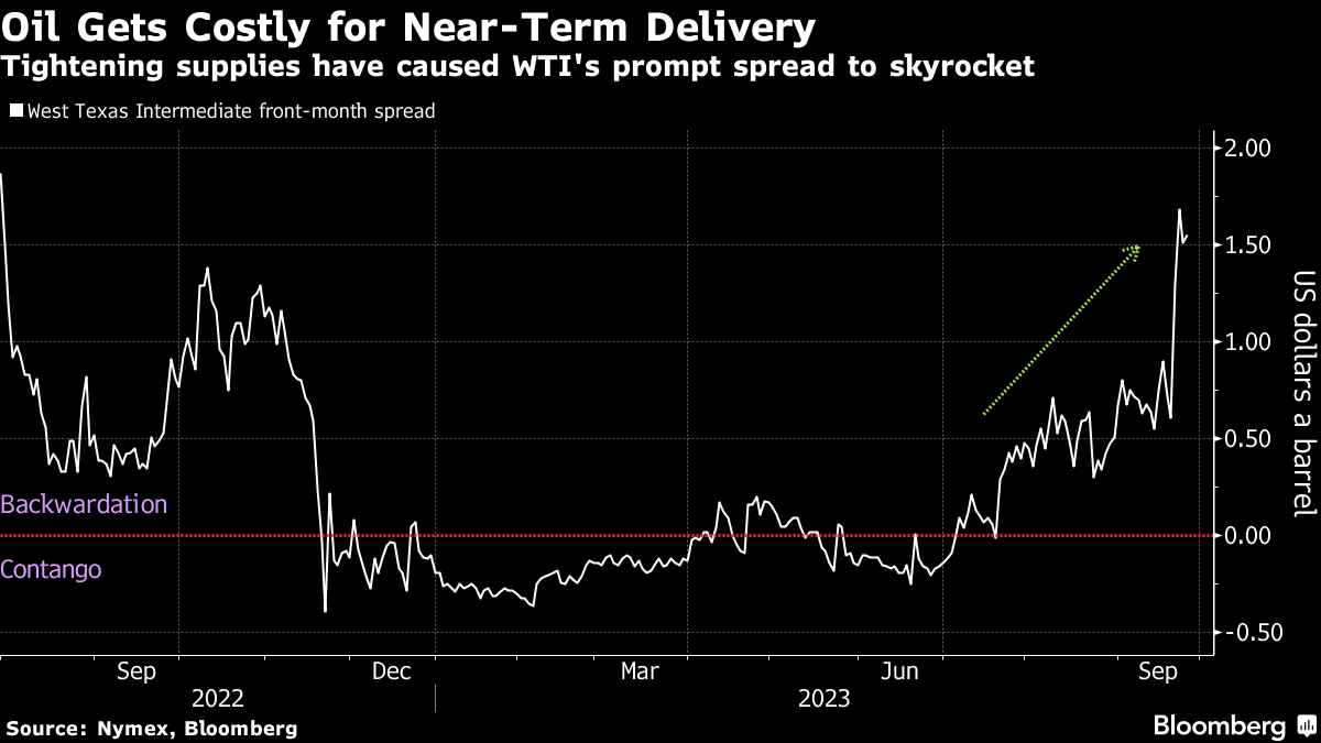Oil settled near $91 a barrel, reversing earlier losses that were spurred by investors wrestling with the possibility of a prolonged period of higher interest rates. Traders continue to see signs of supply scarcity as the premium for near-term US oil barrels is hovering at the most expensive in over a year, indicating a market deficit.