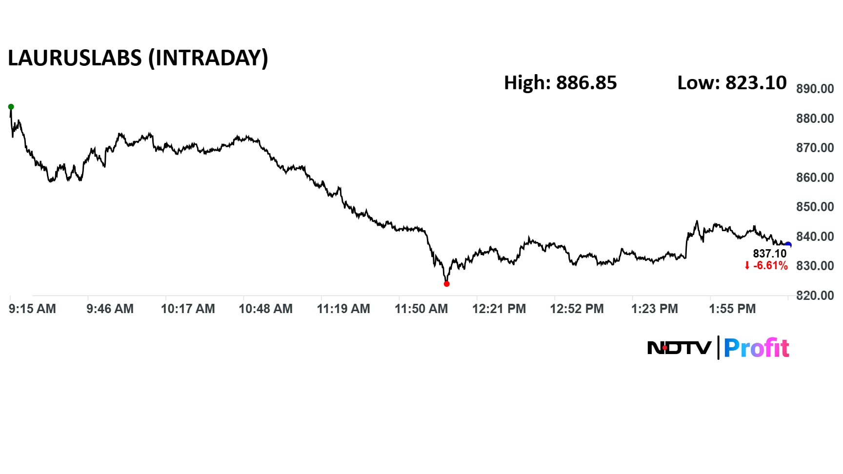 Laurus Labs share price fell 8.2% intraday to Rs 823.1 apiece.
