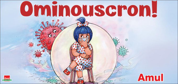 The Amul girl commenting on the spread of Omicron variant. (Image: Amul website)