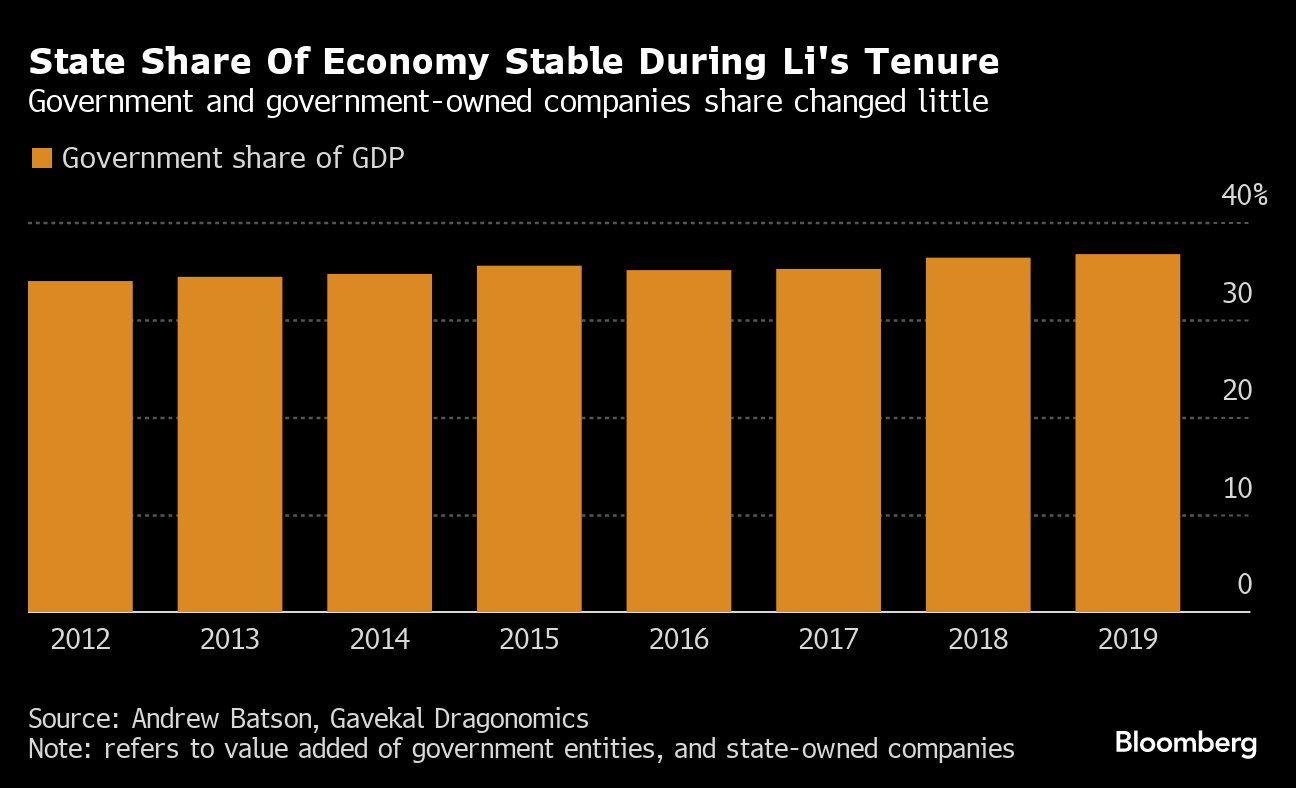 The share of state-owned companies, when measured by China's economic output, remained constant through Xi's tenure at about 35% of GDP, according to Andrew Batson, director of China research at Gavekal Dragonomics. That was largely due to a rapid expansion of China's financial sector, which is mostly state-owned.